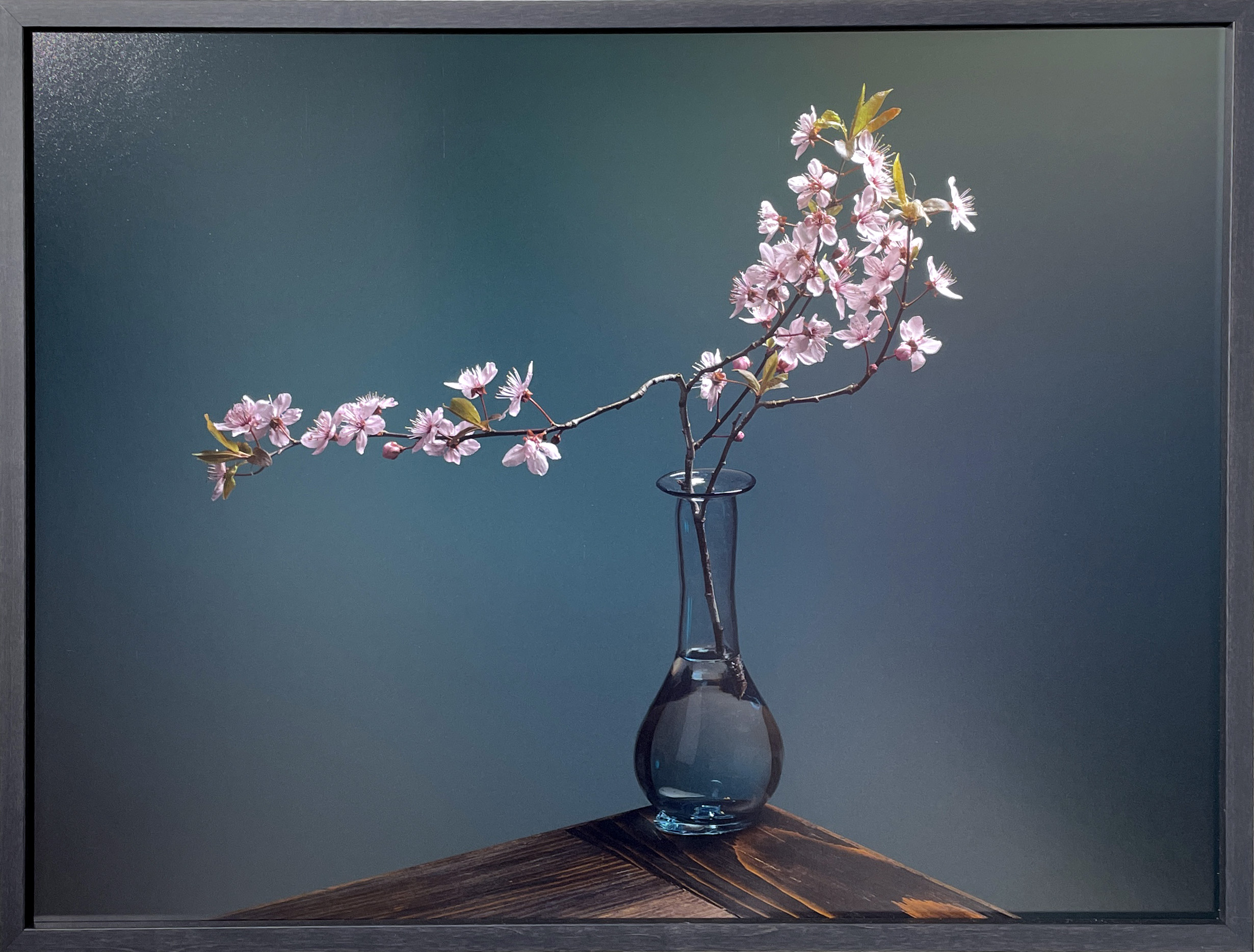 Während die hier gezeigten Malereien oftmals Bezüge zu fotografischen Aufnahmemodi und Bildentwürfen unterhalten, geraten die Fotografien von Polanc farbkompositorisch durchaus auch in Auseinandersetzung mit malerischen Diagrammen, wie sie etwa Gerhard Richters Abstraktionen oder den Dschungel-Bildern des Zöllners Rousseau abstammen. Beim Stillleben „Kirschblüten (für Stefanie)“ sind die malerischen Anklänge regelrecht überbordend. Hier lässt die Tilt/Shift-Funktion der Fachkamera (wie im Übrigen auch die oberste Malerei-Liga von Holbein bis Cézanne) leise gegeneinander verschobene Ansichten verschmelzen, was aber die gut und riskant gebaute Komposition mehr stützt als irritiert.